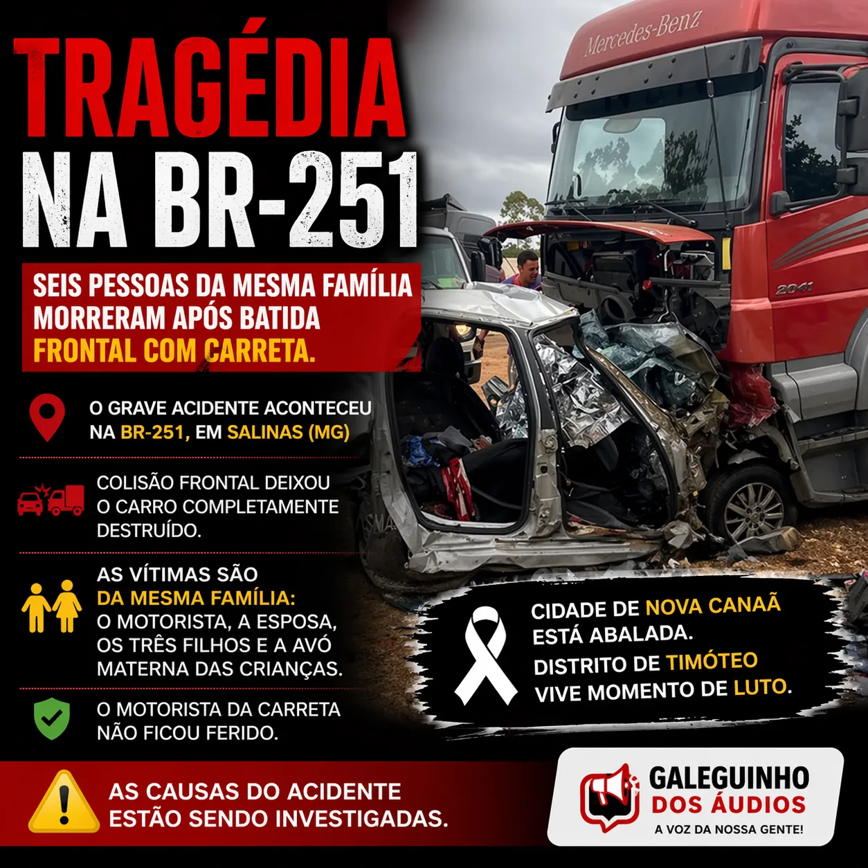 A tragédia ganhou ainda mais repercussão na Bahia após a confirmação de que a família era moradora da zona rural de Nova Canaã. A cidade está abalada com a notícia, e o distrito de Timorante, onde as vítimas residiam, vive um momento de profunda comoção e luto.